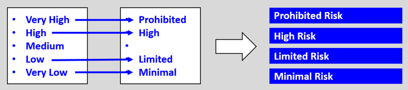 In the old days, before the EU AI Act was invented, risks had three main categories: high, medium and low. Occasionally a risk manager would extend this model and use five categories, introducing very high risk and very low risk in the process. This led to the Standard Risk Classification Model, which is visualized below.